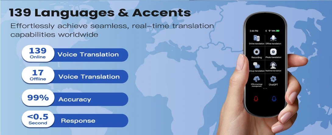 • Instantní překlad 139 jazyků: Umožňuje okamžitý obousměrný hlasový překlad do 139 jazyků online, stačí se připojit k Wi-Fi nebo hotspotu a během 0,2 sekundy můžete využívat okamžitý překlad.